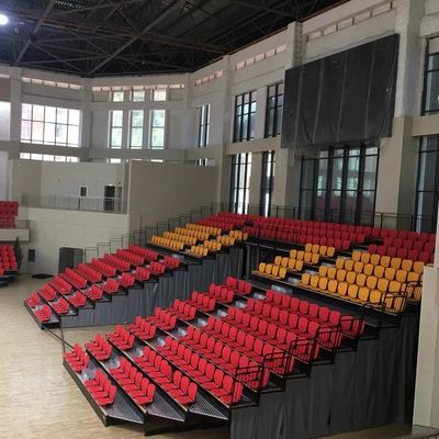 ट्रिब्यून के लिए प्रयुक्त इंडोर जिम आरामदायक पीपी सामग्री वापस लेने योग्य ब्लीचर सीटिंग